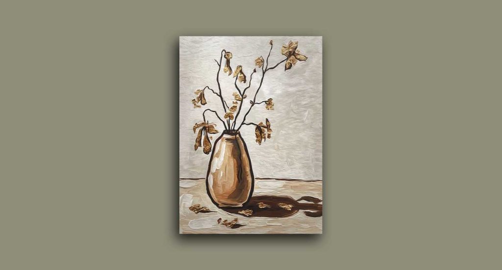 - Smaragdgroen – Een opvallende, rijke tint. Hier past kunst met koelere accenten zoals blauw, turquoise of zilver prachtig bij — vooral als je een modern interieur hebt.